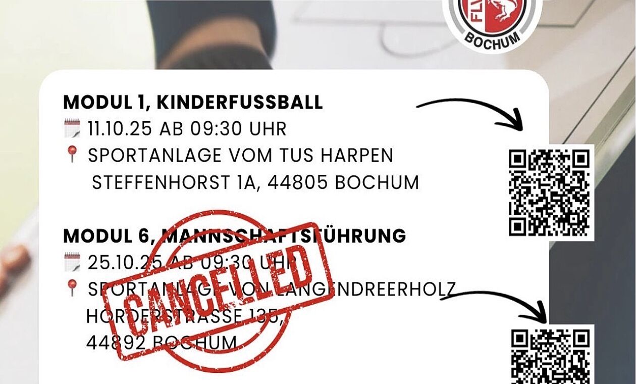 Die für morgen angesetzte Kurzschulung beim VfB Langendreerholz muss aufgrund der Erkrankung des Referenten entfallen.