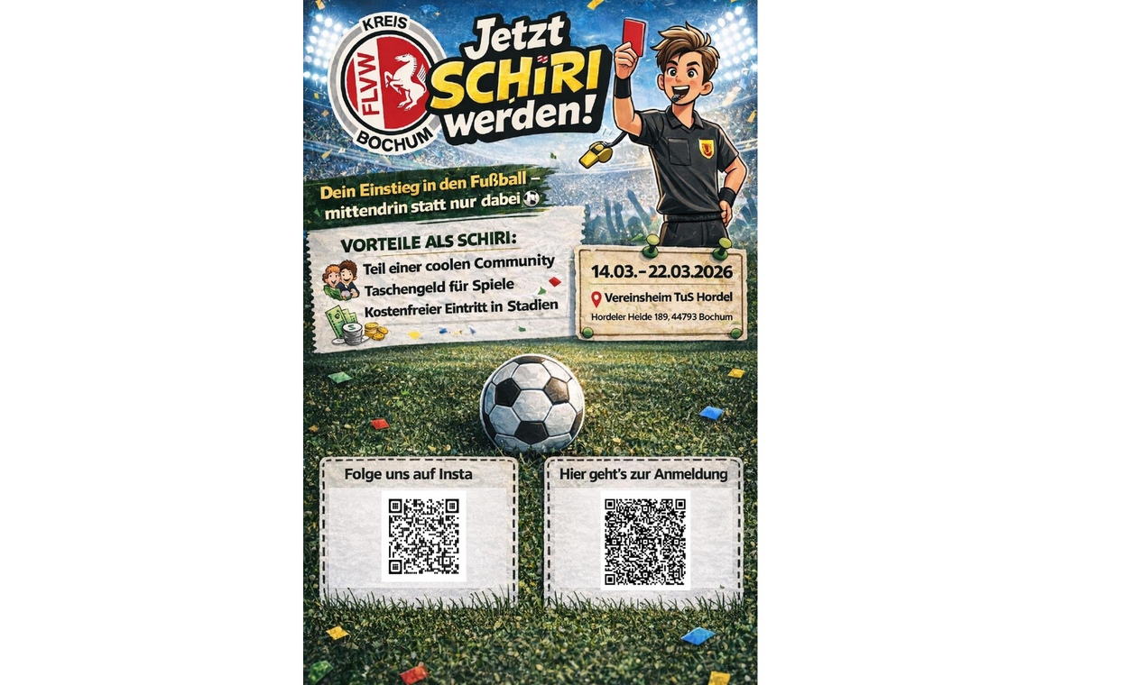Du hast Spaß am Fußball? Du hast Lust, Dich regelmäßig zu bewegen? Du hast Lust, Teil einer tollen Gemeinschaft zu sein? Du bist mindestens 14 Jahre alt? Dann komm zu uns und werde Fußball-Schiedsrichter*in.