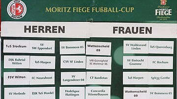 Als „Losfee“ fungierte Frank Müller von der Moritz Fiege Privatbrauerei, die den traditionsreichen Wettbewerb seit vielen Jahren unterstützt. Mit sicherer Hand zog er die Begegnungen sowohl im Frauen- als auch im Herrenwettbewerb. Unterstützt wurde er dabei vom Pokalspielleiter Bernhard Adler, des Fußballkreises Bochum.