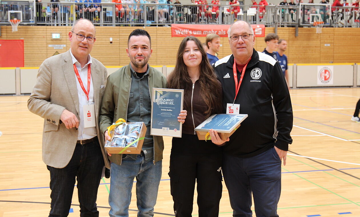 Für die "Danke Schiri" Aktion wurden in diesem Jahr Lulzim Sadiku und Hanna Dorfstecher ausgezeichnet. Beide freuten sich über die Anerkennung und die Danksagung von Axel Zimmermann und Jörg Brelinger.