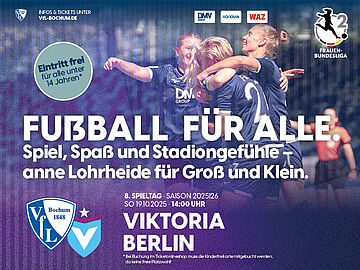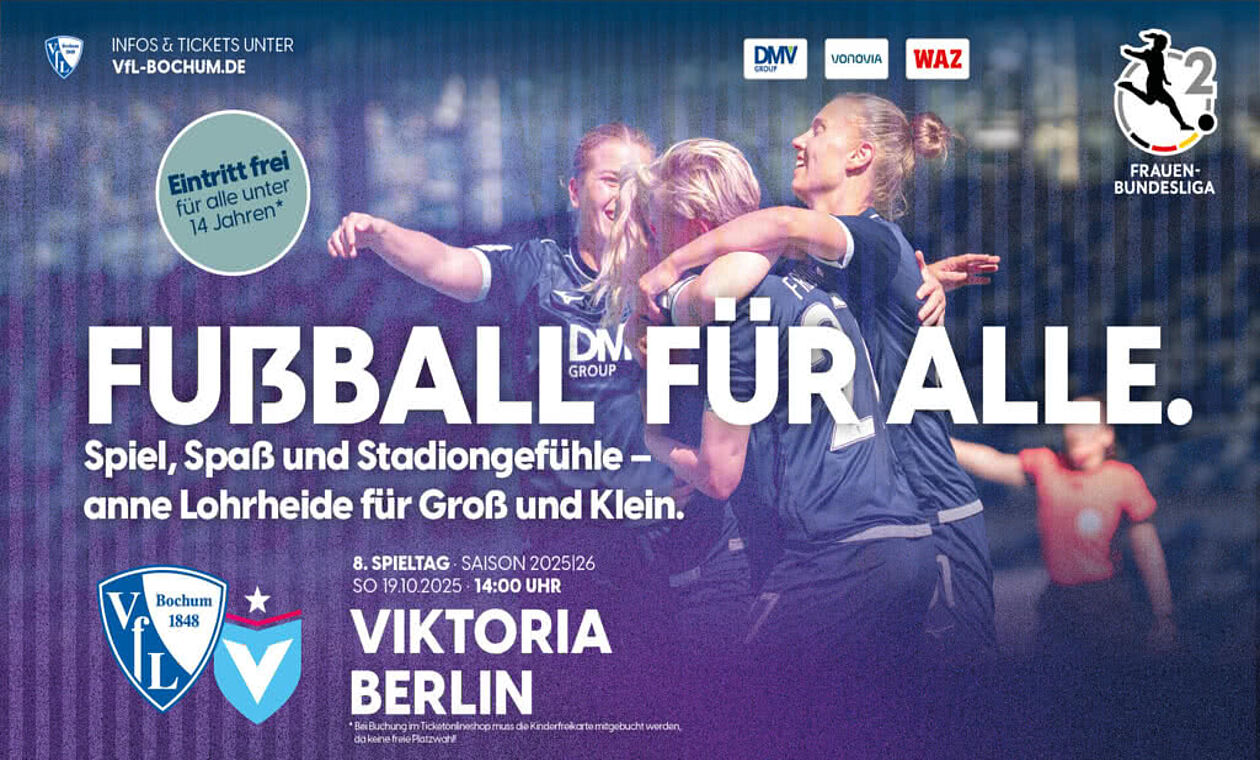Spiel, Spaß und Stadiongefühle. Seit dieser Saison spielen die Frauen des VfL Bochum 1848 in der 2. Bundesliga im Lohrheidestadion. Neue Heimspielstätte, neue Geschichten, derselbe VfL. Doch was wäre ein Umzug ohne eine Einweihungsfeier? Am Sonntag, den 19. Oktober, steht das Heimspiel gegen Viktoria Berlin an. Dazu ist die gesamte VfL-Familie herzlich eingeladen, das neue Stadion anne Lohrheide kennenzulernen. Für Kinder bis zum vollendeten 14. Lebensjahr ist der Eintritt frei.
